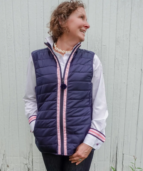 Maggie May Navy Puffer Vest with ribbon